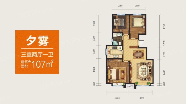 3室2厅1卫 107平